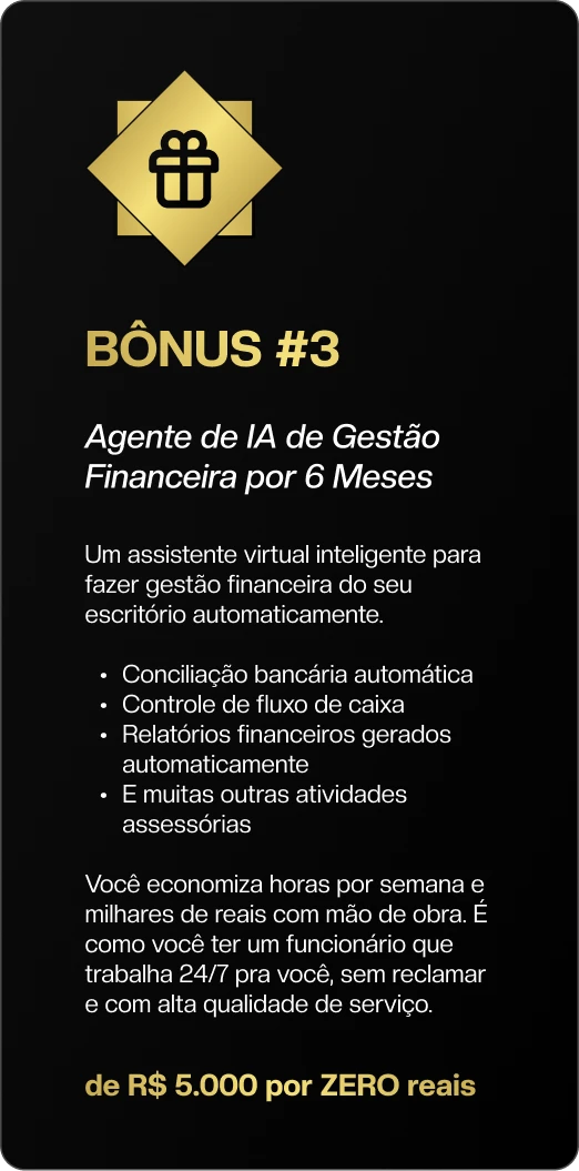 SIM! Se você já tem escritório, está em vantagem. O Método vai te ensinar a transformar sua base atual em fonte de receita de 6 dígitos com consultoria de Reforma Tributária. Você pode passar de R$ 30 mil/mês para R$ 100 mil/mês ou mais sem aumentar sua equipe. É receita estratégica, não operacional